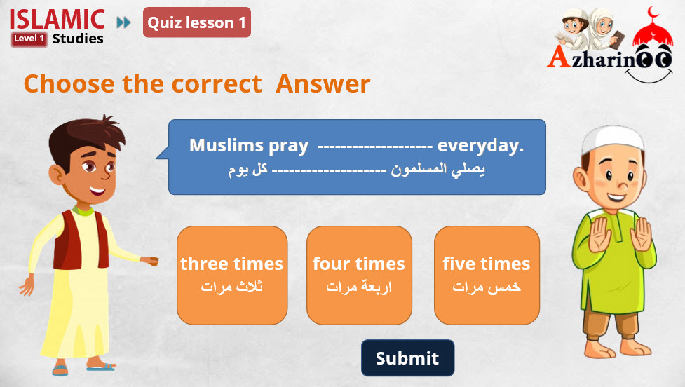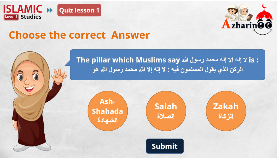 This module was dedicated to teaching young children the principles of Islamic studies from the curriculum of the Kingdom of Saudi Arabia..Quiz has been added to it and it was produced for the benefit of Azharino Academy